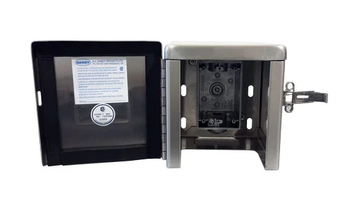 Hinged, padlockable, gasketed front door complete with stainless steel clasps. Secures cords & receptacles from unauthorized use or removal - factory standard device boxes are only FSU 3/4 aluminum or Sceptor FSS PVC